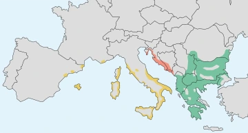 Pro poddruh želvy zelenavé Testudo hermanni hermanni (na mapě níže vyznačeno žlutě) je charakteristický kontrast mezi tmavým zabarvením krunýře a sytým odstínem žlutozelené. Je menší vzrůstem, okolo 15-20 cm. Vyskytuje se v západní Evropě (Španělsko, Francie, Itálie). Na Baleárských ostrovech, Korsice, Sardinii nebo také Sicílii. Hojnější poddruh Testudo hermanni boettgeri (vyznačeno zeleně) může dorůst až do velikosti 30 cm. Je tedy větší a má spíše světlé, žlutohnědé zabarvení. Vyskytytuje se na území Balkánských států od Albánie po Turecko. V současné době je kategorizace želv hermannových podle poddruhů diskutabilní. Existují totiž značné rozdíly nejen mezi přijímanými poddruhy hermanni západní a východní, ale také mezi místními formami. Avšak genetické testy zatím chybí. Růžově je vyznačená oblast výskytu Testudo hermanni hercegovinensis (želva dalmácká) převážně na území dnešního Chorvatska a Testudo hermanni peloponnesica která se vyskytuje pouze na poloostrově Peloponés v jižním Řecku. Oficiálně se však jedná pouze o místní varianty T.h.boettgery. Obývají hlavně pobřežní oblasti, ale také teplé vnitrozemské nížiny do 500 metrů nad mořem. Krajina je tvořena travnatou stepí, zarostlou keři, které jim poskytují dostatek stínu a úkrytu.